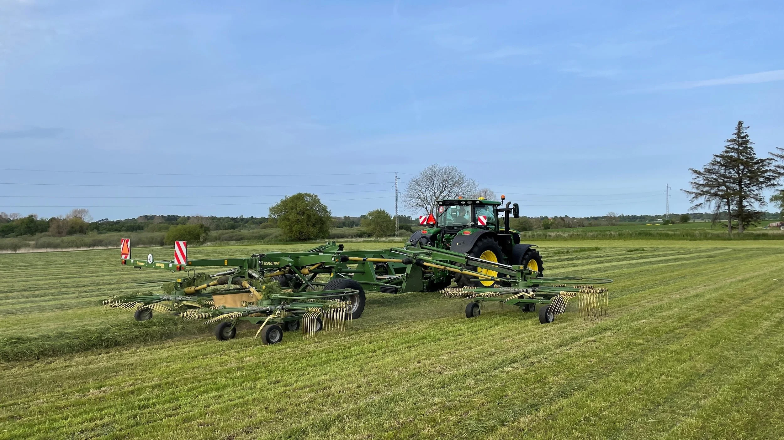Faste: Vi har siwi-hitch system. Det betyder, at vognen løber lige efter finsnitteren, og at skiveslåmaskine, rive og snitter med vogn kører i samme spor og rammer eventuelle gyllespor hver anden eller tredje gang (24 eller 36 meter gyllespor).